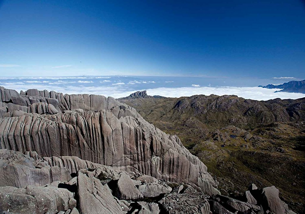 O Parque Nacional de Itatiaia fica na Serra da Mantiqueira, no sudeste do Brasil. Na secção inferior do parque, os trilhos atravessam a Mata Atlântica, que alberga macacos muriqui raros e aves coloridas, como o tucano e a maria-leque-do-sudeste. Existem quedas de água como a gigantesca cachoeira Véu da Noiva e o Mirante do Último Adeus oferece vistas deslumbrantes para o vale.